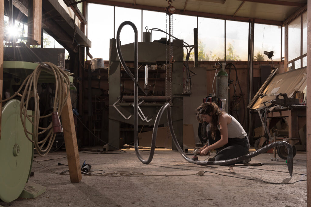 Le geste demeure ainsi pleinement lisible. Contraindre, plier, forger, ajuster : chaque intervention laisse une trace, inscrivant dans la matière la mémoire de sa transformation. Les sculptures conservent cette tension entre maîtrise et lâcher-prise, donnant à voir des formes en équilibre, ouvertes à l’expérience du regard et du corps.